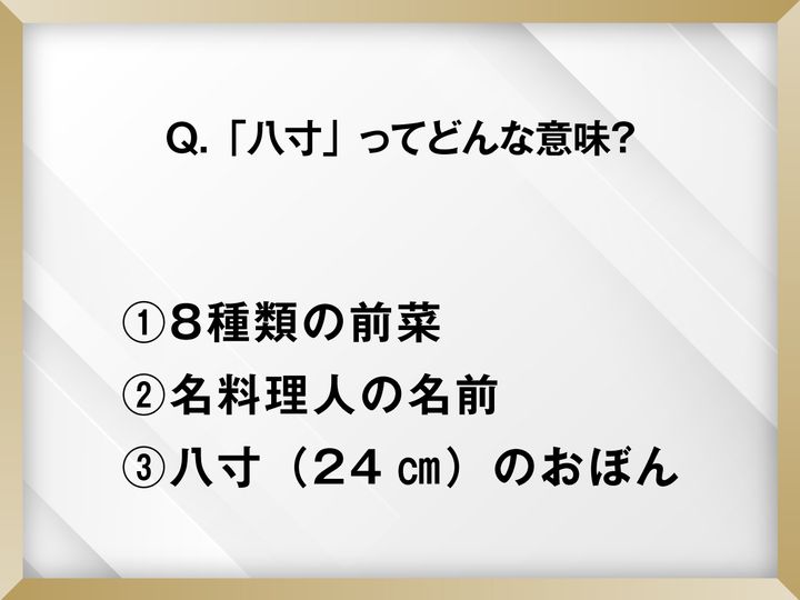 今回は、知っているようで分からない、和食の「八寸(はっすん)」についてのクイズです。