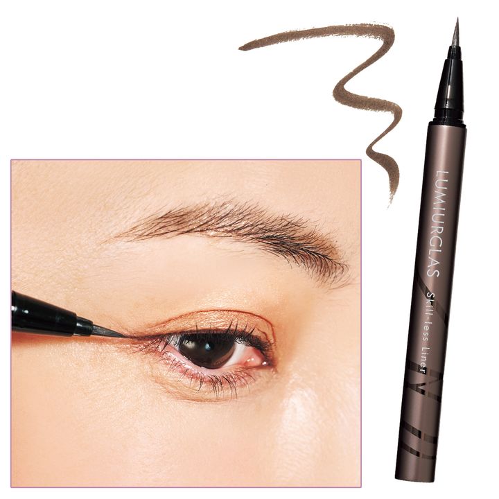 目尻は跳ね上げず、平行&長めに。はれぼった目に太めラインは重たさを助長してしまうので、力を入れても太くならない極細ライナーを使うのが◎。こげ茶やグレーなどのニュアンスカラーを選べば、抜け感も叶います。