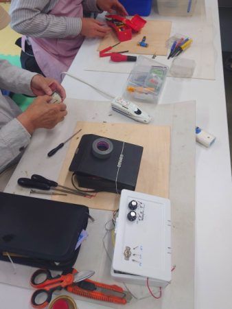 おもちゃドクターたちが相談しながら診療(修理)してくださいます。