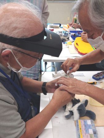 「日本おもちゃ病院協会」が開く養成講座を受けた後、おおさか・おもちゃ病院協議会でトレーニングして、各おもちゃ病院で活躍されるそうです。 会社を定年退職後におもちゃドクターになられる方も多いようですよ。
