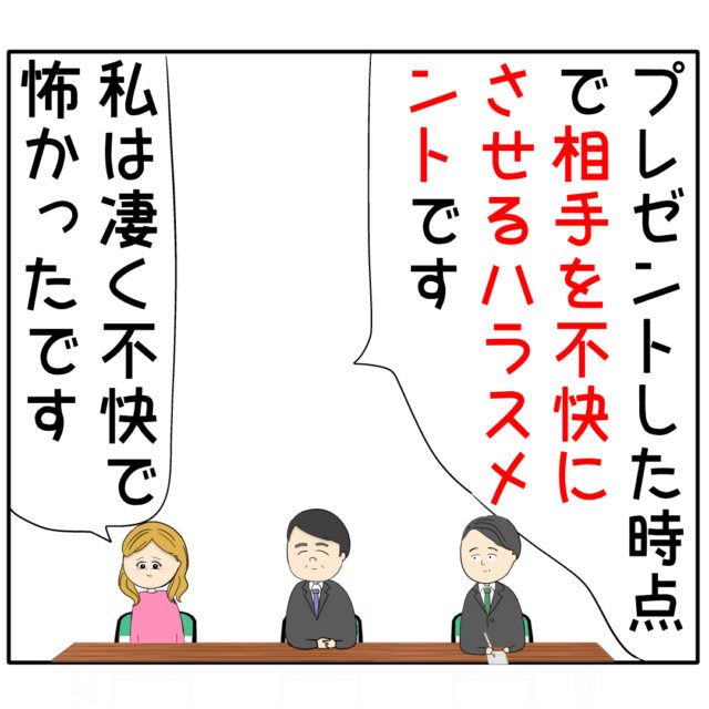 「プレゼントした時点で相手を不快にさせるハラスメントです。私は凄く不快で怖かったです」と、良し男さんからピアスを贈られて怖かったとふり子さんは言います。