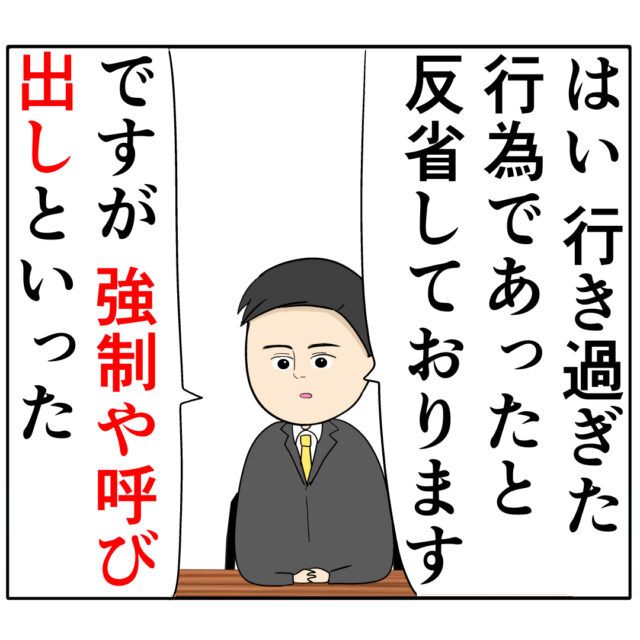 「はい。行き過ぎた行為であったと反省しております。ですが、強制や呼び出しといった」