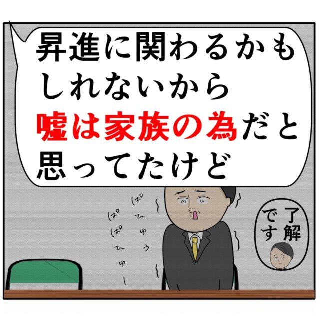 「昇進に関わるかもしれないから嘘は家族のためだと思ってたけど」