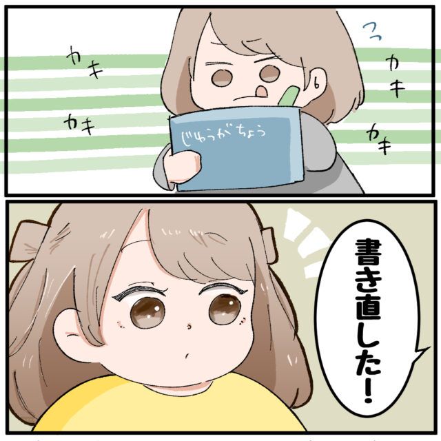 長女みーちゃん、長男はーくん、1歳7ヶ月差の年子姉弟のママである和栗ぐりさんから、文字の練習のお話です。