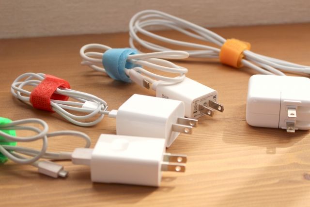 コードを無理に折り曲げたり、キツく縛ると危険なのでなるべく束ねないのが基本。