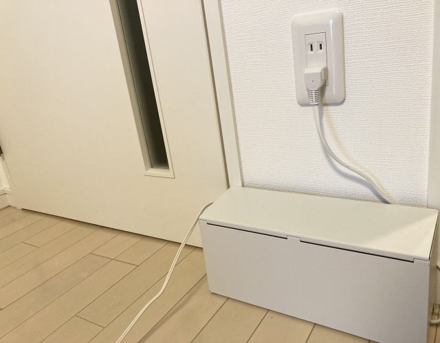 コンセントボックスを使用すれば、ぐちゃぐちゃのコードを簡単に隠せます。