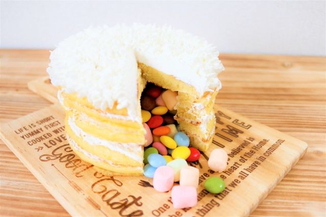 自作できるので「お菓子のバースデープレゼントと思いきや紙吹雪が飛び出してドッキリ」なんてサプライズ演出もできますよ。
