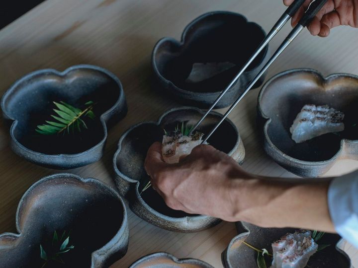 看板となる料理は、二十四節季・七十二候の節目に合わせた食材や調理方法で提供。瀬戸内の魚や近郊の山の幸など倉敷地域の食材を日本料理の技法でアプローチし、かつて物流の拠点で栄えた倉敷の歴史を表現する。