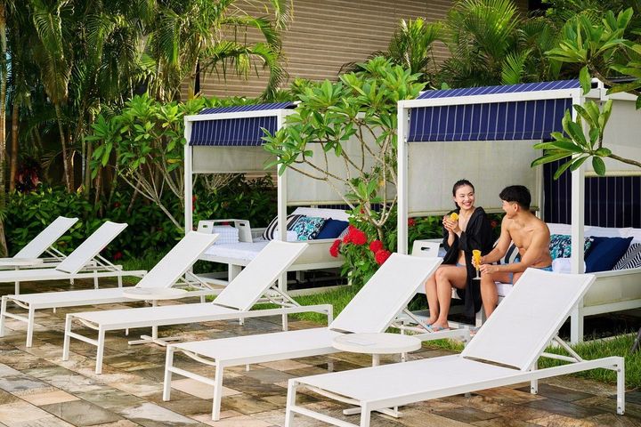 完全予約制で最大3名まで利用可能なカバナを完備。ウェルカムドリンクにはたんかんを使用したホテル特製ドリンクを提供する。また期間中は1日2室限定で、温水プール利用付きの宿泊プラン「ウインターリトリート」も販売。宿泊者には特製ガウンが贈呈され、持ち帰りも可能だ。