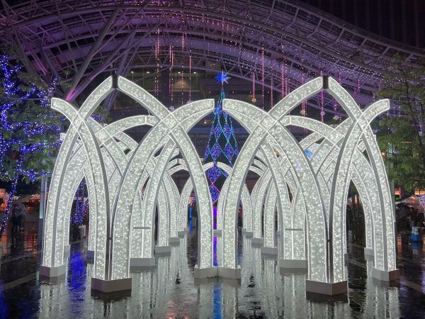 冒頭でお伝えしたように点灯式当日はあいにくの雨でしたが、雨に濡れた地面が反射してさらに幻想的な光の街となりました!