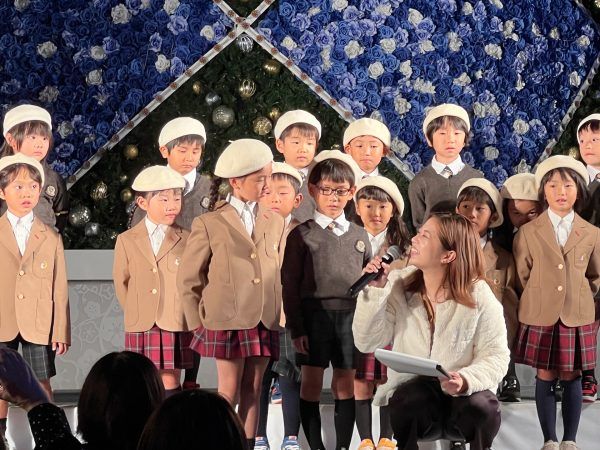 司会者が「クリスマスのどんなところが好きですか。」と尋ねると、緊張しながらも「サンタさんが来るところです。」との答えが。可愛らしい回答に、会場全体がとても和みました。