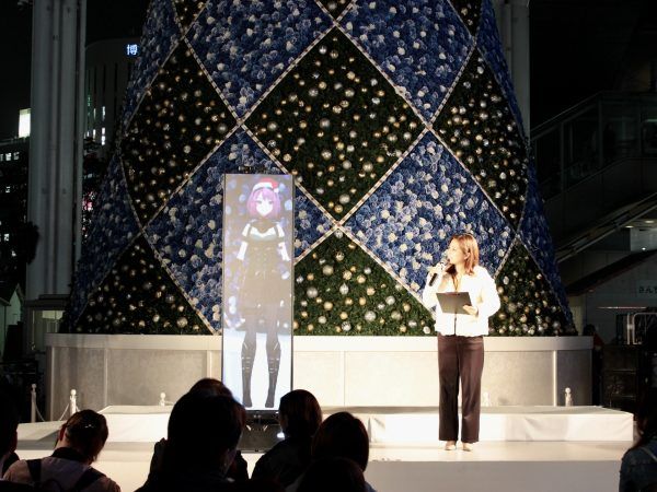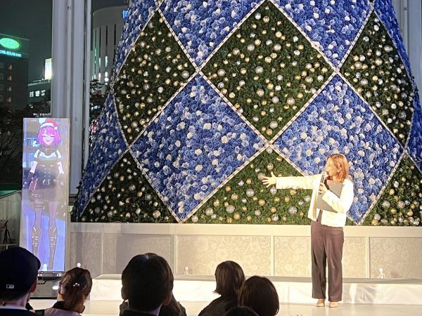 点灯式のオープニングトークには活動2周年を迎えたJR博多シティ公式VTuber『羽形モモ(はねかたもも)』さんが登壇しました。