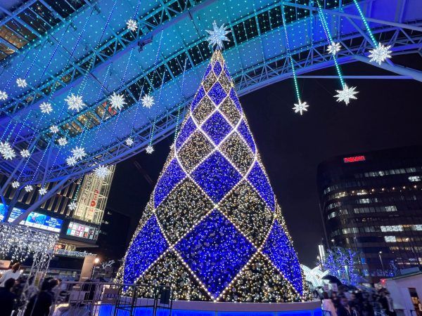 「光の街・博多」は、JR博多シティで毎年開催される大規模なイルミネーションイベントです。今年で14回目となり、福岡の冬の風物詩として多くの人々に親しまれています。 高さおよそ15メートルのツリーを中心に、64万球ものイルミネーションで博多の夜を華やかに彩ります。