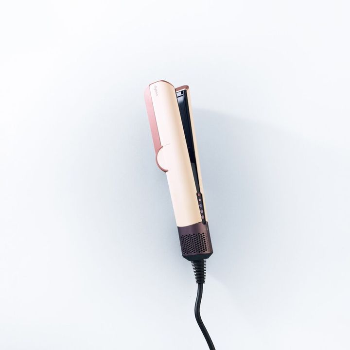 風だけで髪をまっすぐのばす〈ダイソン〉のストレートドライヤーが日本初上陸。「ウェットモードで濡れた状態のまま挟んで乾かすだけで、そのままきれいなストレートになるのが画期的! 従来のヘアアイロンは、熱で無理やりクセをのばしたような人工的なストレートになることや、髪への負担が気になっていましたが、これなら風の力と独自プレートのおかげで低い温度でも自然に柔らかく仕上がります。夜に乾かしてから寝ると翌朝の寝癖も激減。ドライモードで挟まずサッと整えれば、夜の状態が再現されることにも感動しました。冷風がかなりひんやりとしていて、気持ちよかった」