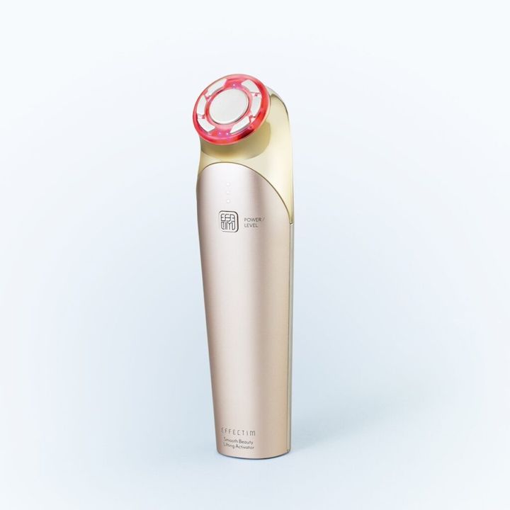 〈資生堂〉の長年の肌研究と〈ヤーマン〉の技術が合わさった〈エフェクティム〉より、超音波を使った美顔器が新登場。「3段階の強弱選択のみでモードはひとつ、半顔3分計6分のケアで十分、というシンプルさ!特殊EMSの不規則なトントントンというリズムの刺激が心地よく、ヘッドはじんわりというよりしっかり温かくなるので、滑らせるだけで顔や首のこわばりがほぐれるようでした。使用直後から肌がふっくらする感覚で、数日間使い続けるとよりピンとしたハリを実感、ゆるんだ毛穴やほうれい線もあまり気にならなくなりました。これは、使い続けてこそ、満足度が高くなる美顔器ですね」