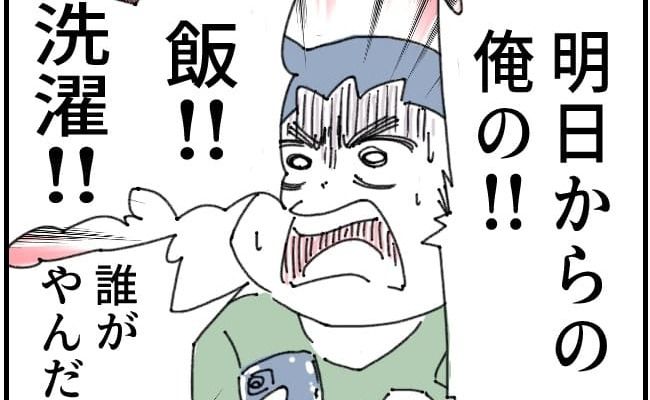 「明日からの俺の!飯!! 洗濯!! 誰がやんだよ!!」