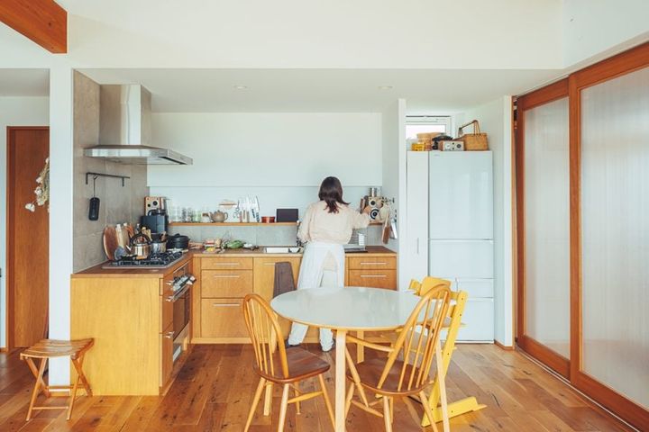 「木製ということもあり、建てた当初から時間が経ち、汚れやシミも目立ってきました。数年前に削って、オイルで磨いて綺麗にしましたが、日々の暮らしのなかで、また少しずつ、生活の跡が残ってきています。ただ、それも味だと思い気にせずガシガシ使っていきたいですね」
