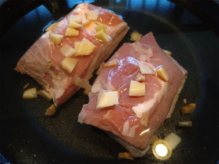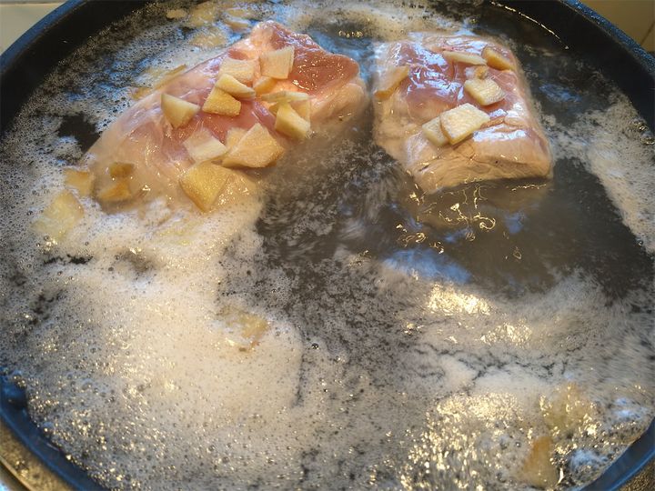 3.鍋に豚肉がかぶるほどの水(分量外)を入れ、2のしょうがを加えて強火にかける。