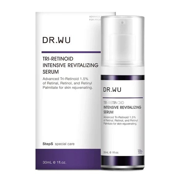 3種類のレチノイド(レチナール、レチノール、パルミチン酸レチノール)を配合した美容液。『守り』のレチノールとして「パルミチン酸レチノール*」 『攻め』のレチノールとして「レチノール*」だけでなく「レチナール*」も贅沢に配合。お肌のキメを整え、ハリを与え、毛穴レスの印象肌に導きます。DR.WUのトリレチノイド 1.5% セラムでは、効果をしっかりと感じていただけるよう「真空・遮光ボトル」で成分を守っています。また、レチノイドだけでなく美容好きが注目しているヒアルロン酸Na、ヘキサペプチド、ナイアシンアミドなども保湿成分や整肌成分として贅沢に配合されています。