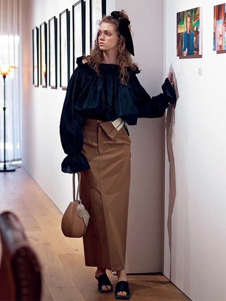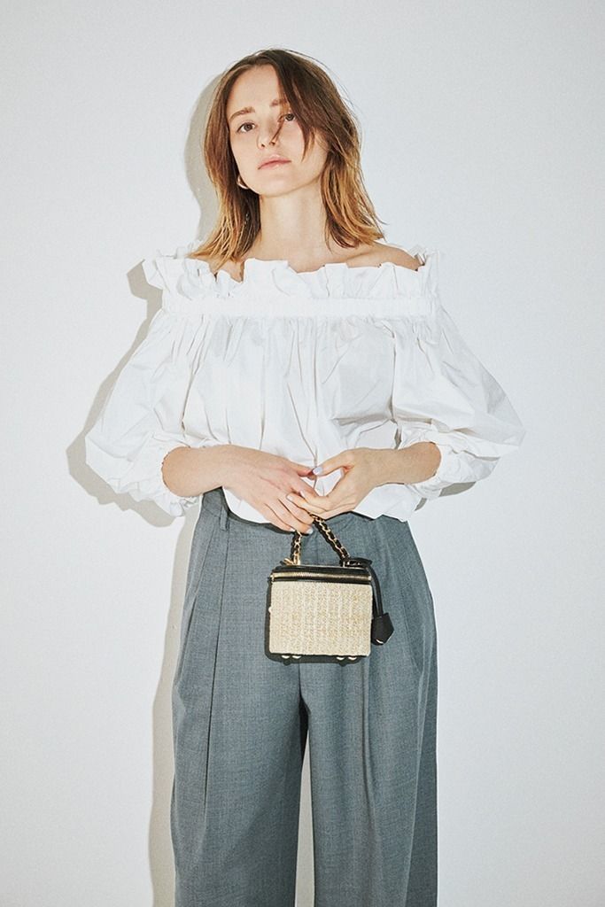 もはや定番化してきたパフスリーブブラウスは、ラフに装えるドライタッチな素材で採用。気楽に手にとれて着映えするデザイン性をもった「カジュアルなドレス」として、日常の中で気分転換したいときにもってこい。