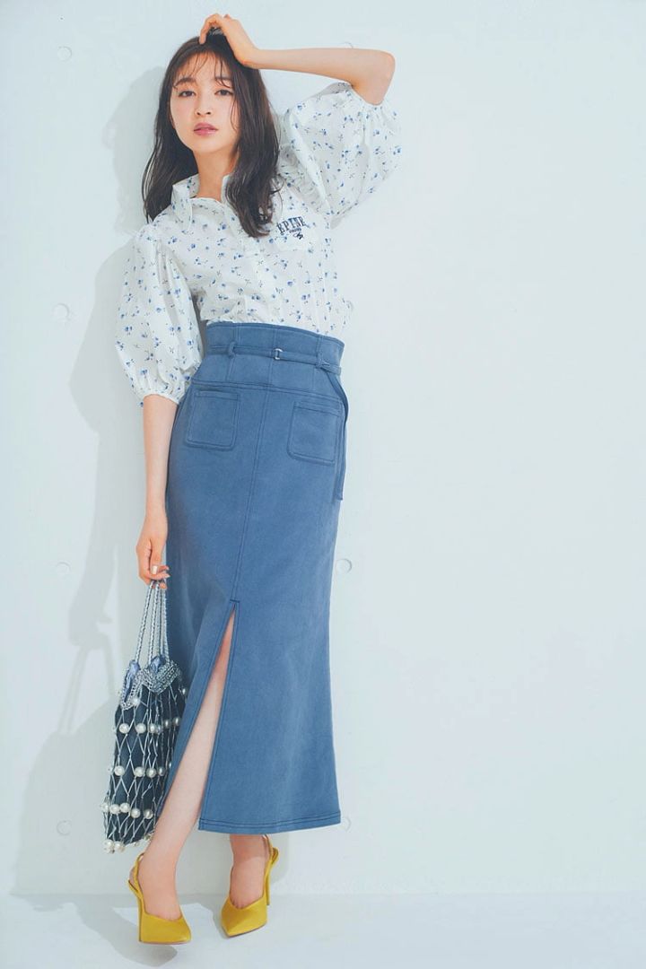 花柄ブラウス 10,880円/épine タイトスカート 12,980円/REDYAZEL ルミネエスト新宿店 バッグ 9,350円/カカトゥ(アンビリオン) パンプス 6,590円/ZARA(ザラ)
