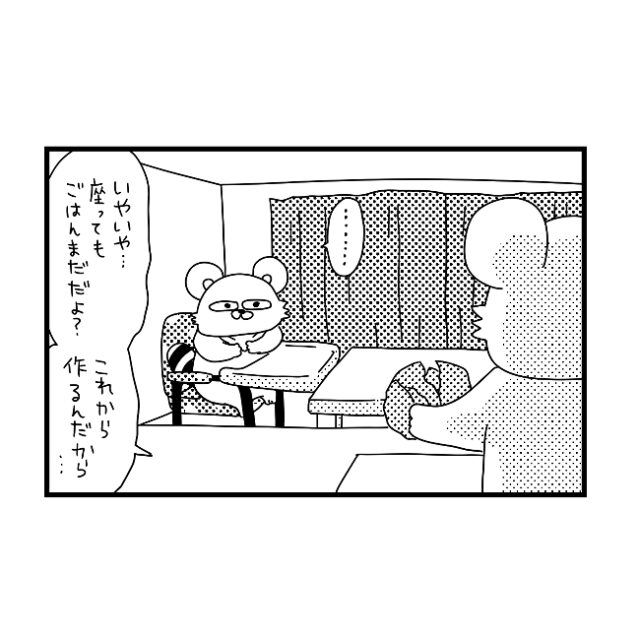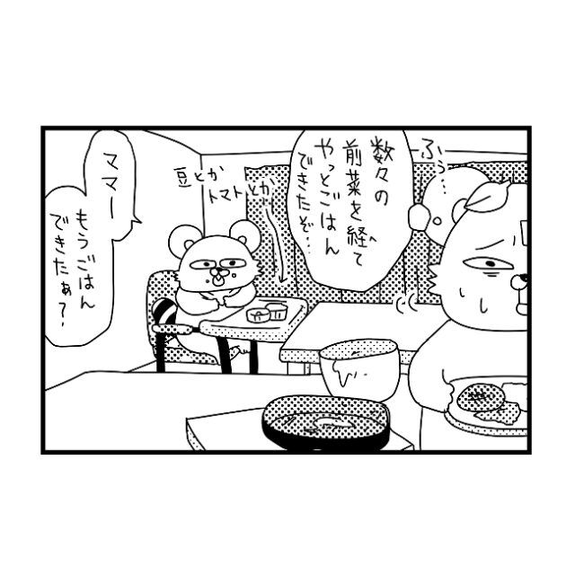 3. プレッシャーがすごい!食事の準備中からイスに座って催促する息子|ぽこたろー育児漫画