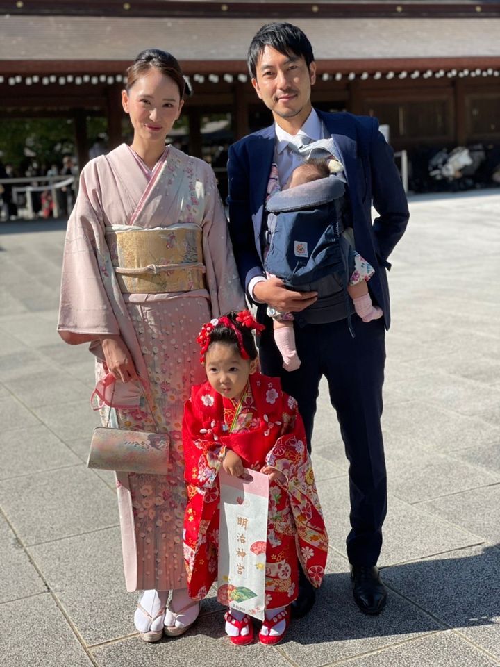 「着物は母から譲り受けたもので、華やかな柄とピンク色がハレの日にぴったり。当日の朝に私と娘の二人分の着付けを母に頼み、ヘアセットのみ美容院で行いました。その後自宅近くの写真館で撮影し、明治神宮でお詣り。祈祷も終えたあと新宿の『住本クラブ』で食事をとりました。撮影、お詣り、会食と一日がかりのスケジュールを着物で過ごしたため娘の機嫌が持つか心配でしたが、移動をタクシーにしたことで疲弊せず最後まで楽しく過ごせたのでよかったです」吉田未奈さん・36歳/主婦・161㎝(5歳と3歳の女の子ママ)
