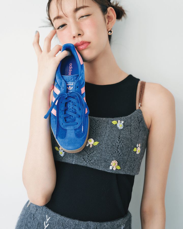 豊富なカラーバリエーションでも人気のガゼル、秋の新作はインパクト大のブルー×ピンク。サンバよりもストリート感がマイルドだから、ガーリー派にもおすすめ。