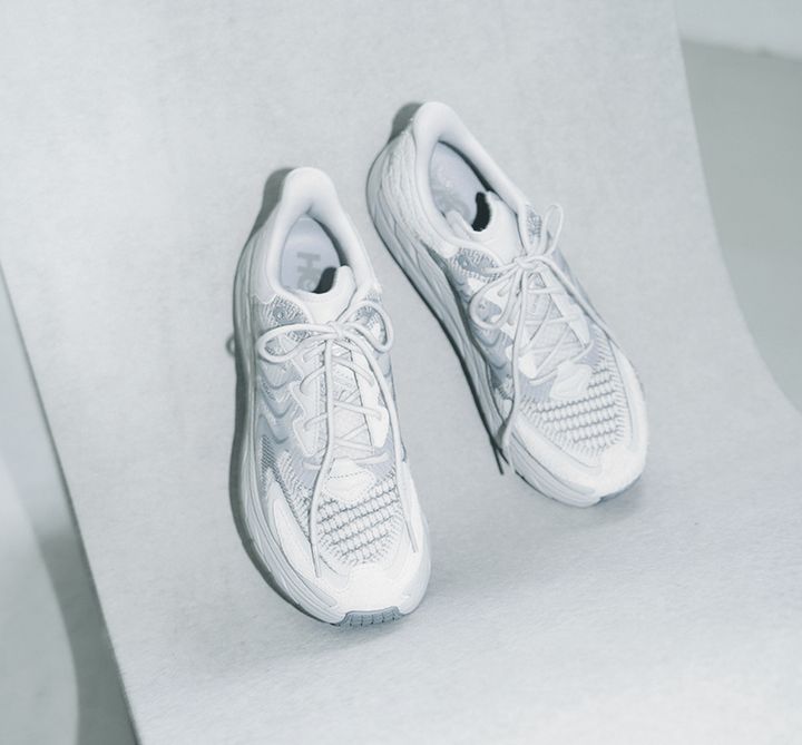 クリフトン LSというモデルの新色は、グレーとの配色でニュアンスを感じる白。プレミアムなランニングシューズブランドならではの歩きやすさはもちろん、ソールが分厚くスタイルUPできるのも嬉しい。