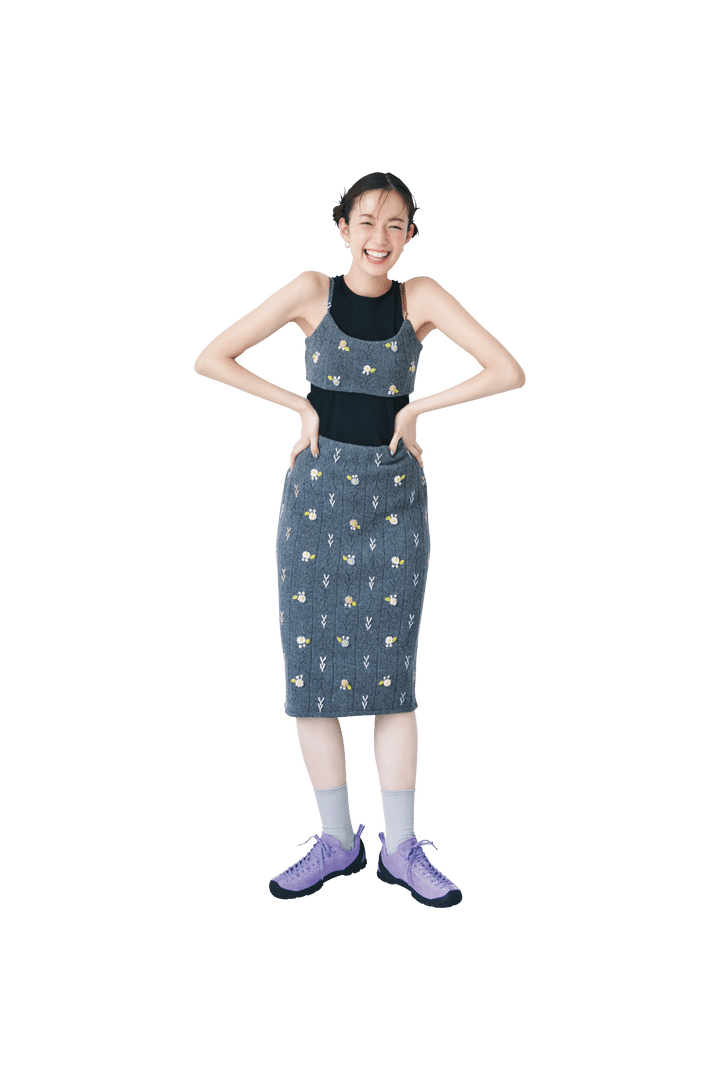 佐藤栞里。ar10月号より スニーカー¥15,180/ キーン(キーン・ジャパン) ビスチェ¥41,800、 スカート¥71,775/ヤンヤン(リディア) タン クトップ¥14,300/デザイナーズ リミックス(コ ロネット) ピアス¥4,400/mimi33(サンポーク リエイト) ソックス/スタイリスト私物