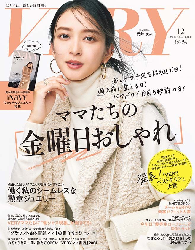 また、チームVERYが総力をあげて試着会を開催、リアルな人気投票をもとに決定した『VERYベストダウン大賞』を大発表♡ 年末年始のご褒美買いに狙いたい最新ジュエリー、冬の足元を一気に更新できる本命ブーツなど、冬のお買い物情報も完全網羅。ママたちの周りで起きているリアルなトレンド現象など、見所満載でご紹介していきます!
