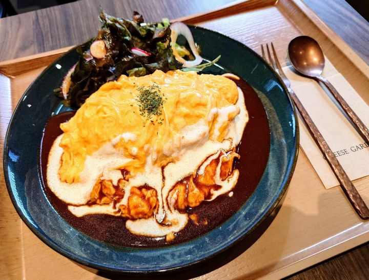 数あるメニューの中でも、不動の人気を誇るのが「THE NIKKOオムライス デミグラスソース」(税込1,900円)。日光御養卵を使った卵でチキンライスをくるみ、デミグラスとオリジナルチーズソースをたっぷりとかけた逸品。