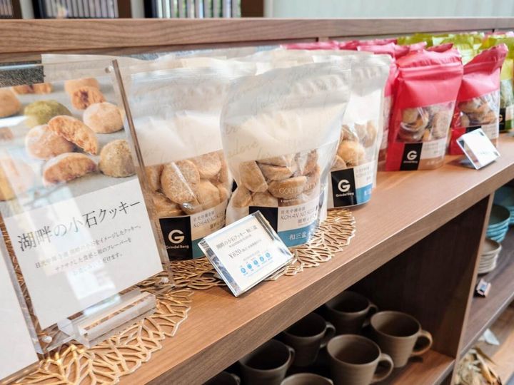 日光中禅寺の湖畔の小石をイメージした「湖畔の小石クッキー」(各税込620円)。サクサクのクッキーに和のフレーバーを合わせた「和三盆・黒糖・抹茶・ほうじ茶・きな粉」の5種類のラインナップ。
