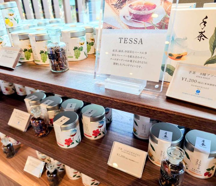 紅茶、緑茶、中国茶をベースにチーズガーデンのお菓子に合うようにブレンドしたお茶「手茶シリーズ」。柑橘香る「御用邸」、シナモン風味で那須高原をイメージした「那須の香り」、栃木産とちおとめをブレンドした「とちおとめセイロン」など8種類(各税込1,200円)。