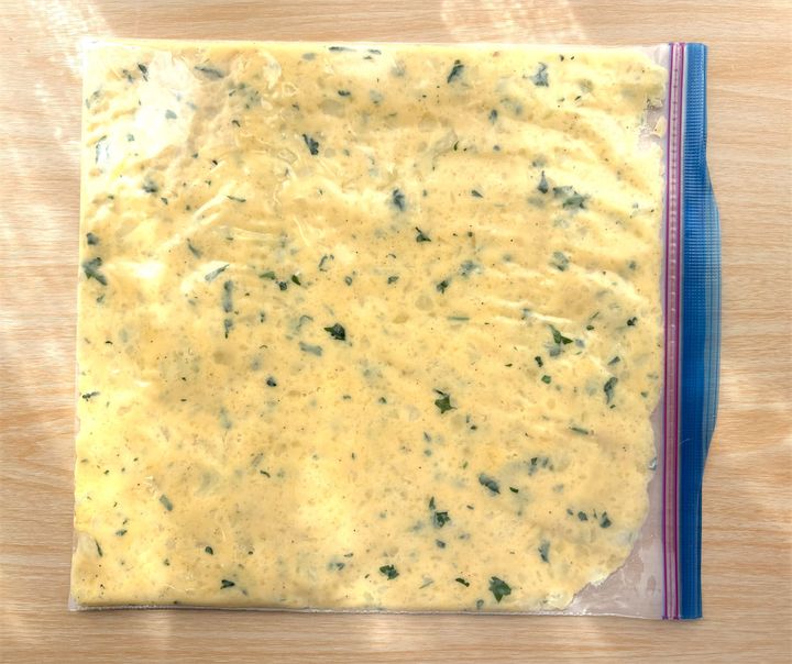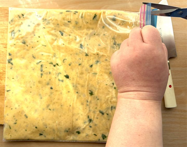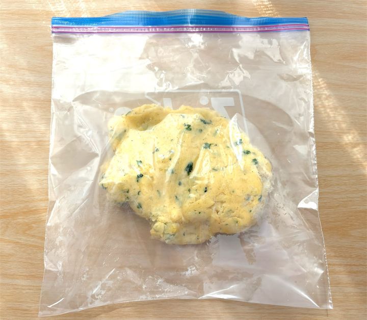 しっかり混ざったら、生地をジッパー付き保存袋に入れて閉じます。