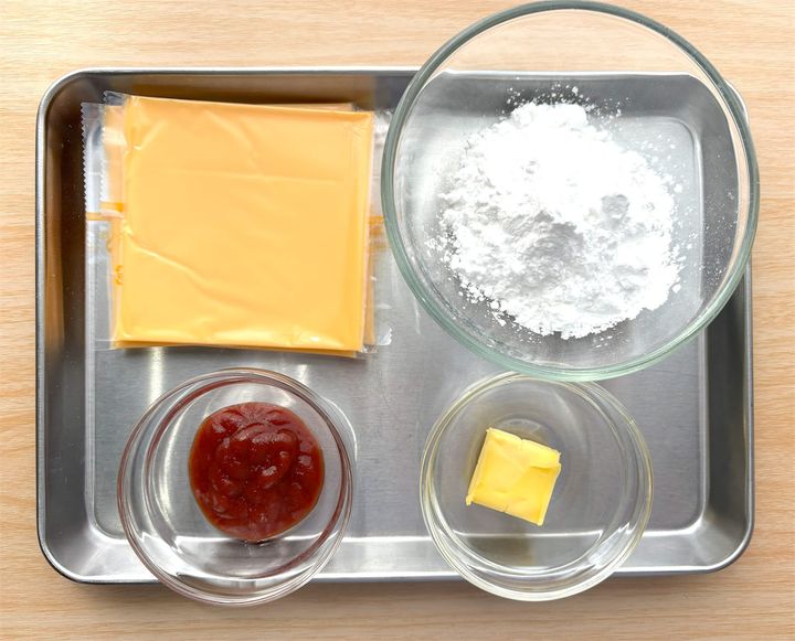 また、動画内で使われていたチェダーチーズは固形でしたが、近所では見つけられなかったので「スライス」のチェダーチーズを購入しました。