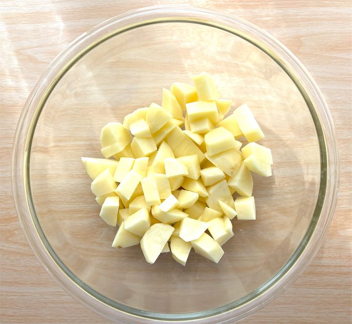 動画内で「じゃがいも2個」と記載されていましたが、グラム数が「600g」ともあったので、グラム数に合わせてじゃがいもを用意しました。