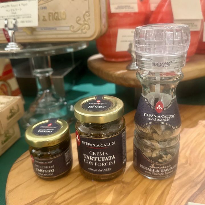 「黒トリュフのスライス」は、黒トリュフの風味をしっかりと感じられるオイル漬け。相性のよいクリームソースと合わせてパスタやグラタンにすると◎。「マッシュルームとトリュフのペースト」はトリュフ好きには堪らない、手軽に使えるペーストです。