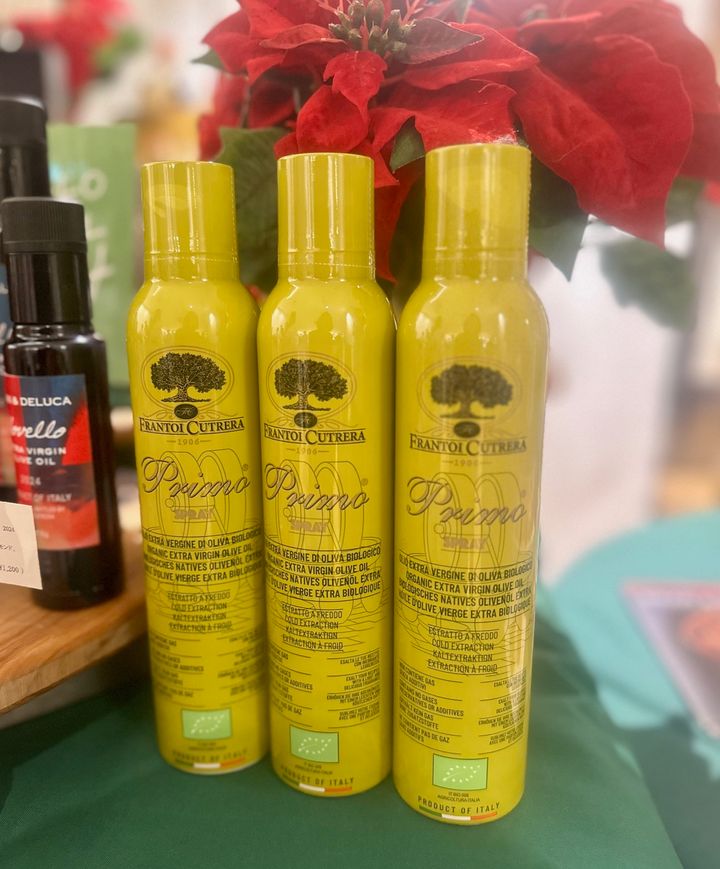 スプレータイプのオリーブオイルも新登場。高品質なシチリアのフレッシュなオリーブを収穫後すぐに搾油したフルーティーで風味豊かなエキストラバージンオリーブオイルです。料理にかけやすいので、カルパッチョやサラダに最適。