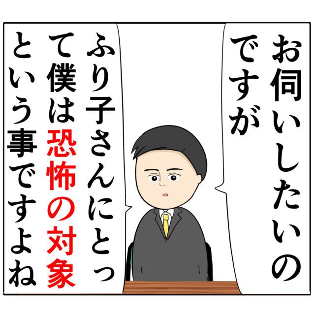 しかし、良し男さんは動揺することなく「お伺いしたいのですが、ふり子さんにとって僕は恐怖の対象という事ですよね」と問いかけます。