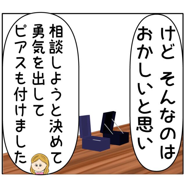 「けど、そんなのはおかしいと思い、相談しようと決めて勇気を出してピアスも付けました」と、飲み会の日にぴあ須さんからもらったピアスを付けていった理由を話しました。