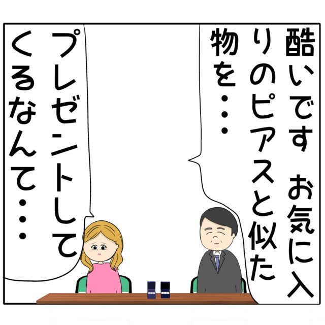 そして「酷いです。お気に入りのピアスと似た物を・・・プレゼントしてくるなんて・・・」と被害者ぶるふり子さん。