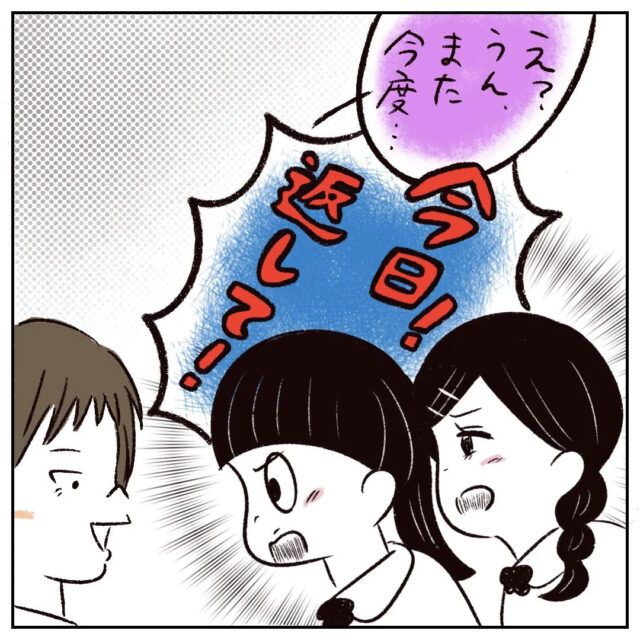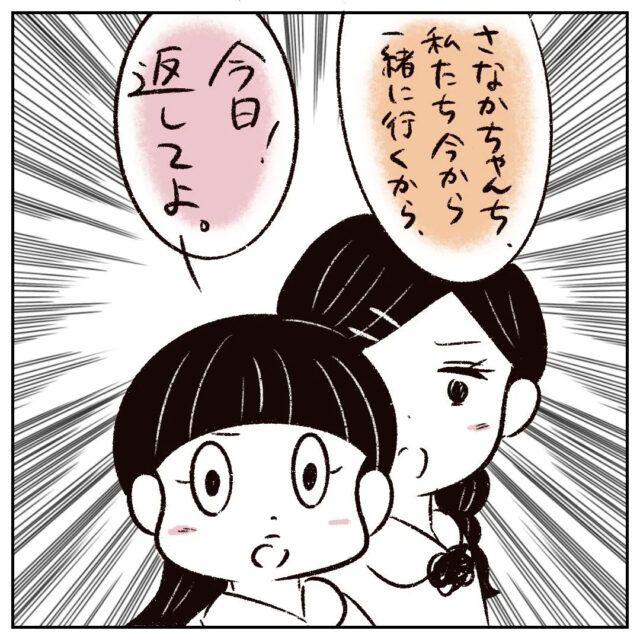 それでも「うん、また今度」と言葉を濁しそうになったさなかちゃんでしたが、「今日!返して!」と2人は譲りませんでした。