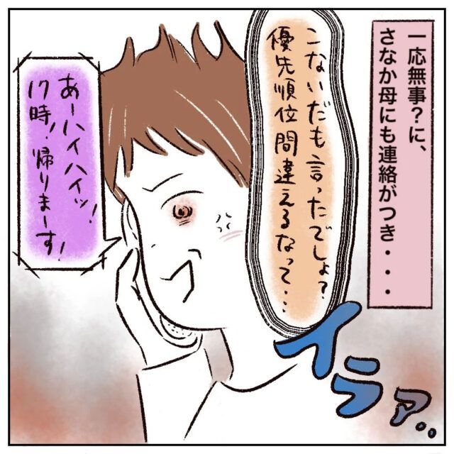 さなかちゃんが友達に借りたものを返さないことをお母さんに伝えたまるさんのお母さんでしたが、それに対して謝罪もなくパチンコの方を優先するお母さんの態度に苛立ったまるさんのお母さんは「この間も言ったでしょ?優先順位を間違るなって・・・」怖い声で言うとさなかちゃんのお母さんは「あっハイハイッ!17時帰りまーす」と慌てて言いました。