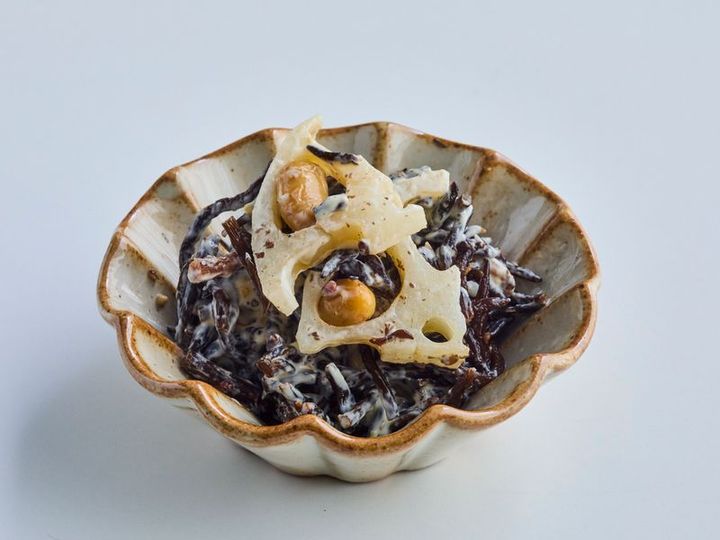 ひじきと食感のバランスがよくなるように、れんこんは薄いいちょう切りに。シャキシャキ感が残るよう、さっとゆでて。