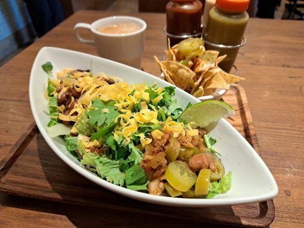 ちょうどタコライスが食べたかったので、メキシカンの看板とおしゃれな雰囲気に引き寄せられて入店。 14時半頃とランチにしては遅い時間だったけど、LO15時というのでラッキー! 店内は、この時間でもお客さんがいっぱいで、実は人気店だったようです。