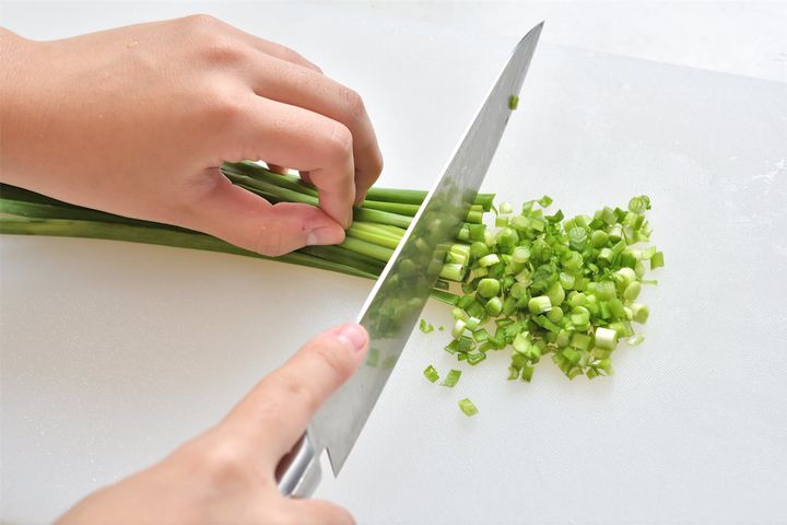 3. ニラをみじん切りにする。