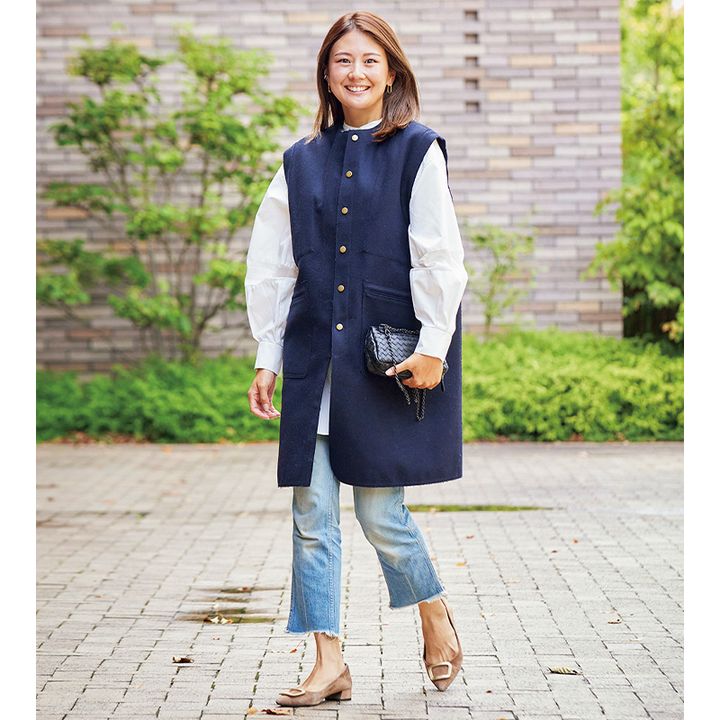 短丈ジレ投入で今っぽさと スタイルアップのいいとこ取り