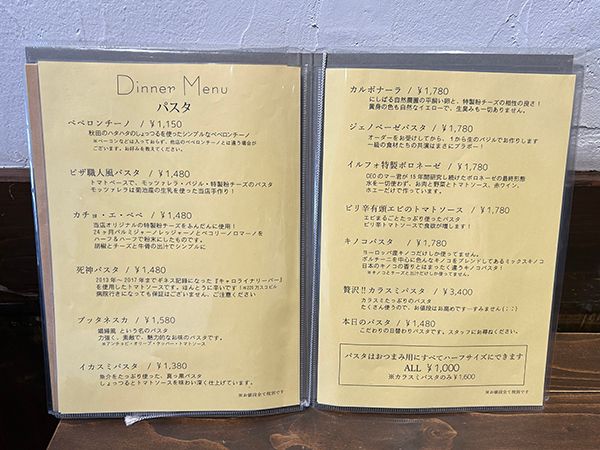ディナーではさまざまなパスタメニューがラインナップされています。オーダーを受けてから生バジルで作る「ジェノベーゼパスタ」、ヨーロッパ産キノコだけを使用した「キノコパスタ」。 ヤバい! メニューを見てるだけでヨダレが出てきます。