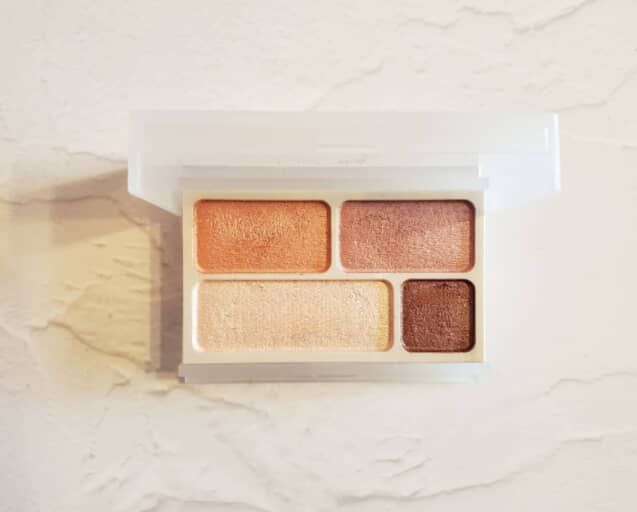 “多幸感”のあるメイクをする上で鍵となるのが、温かみや華やかさを演出すること。そこでおすすめのアイパレットが無印良品の大人気パレット「アイカラー4色タイプ(コーラル)」になります。見たままの発色としっとりとした粉感で粉飛びしないのが特徴です。